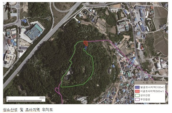 상소산성은 산 정상 평탄지에 축조된 길이 332m 테뫼식 토성지와 이 토성지를 감싸고 있는 길이 810m의 중성, 조선시대 축조된 부안읍성인 외성의 3중 구조를 갖춘 성곽으로 조사됐다.