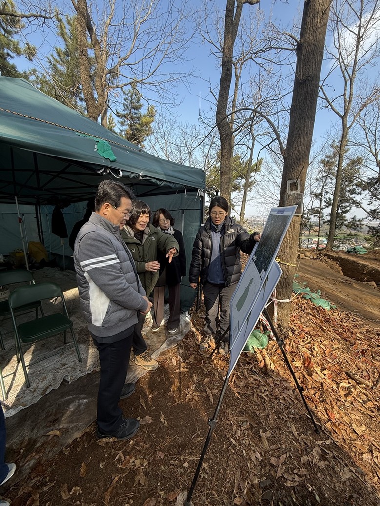 권익현 군수는 발굴조사단으로부터 상소산성 조사 성과와 향후 조사 일정 등에 대한 설명을 청취했다.