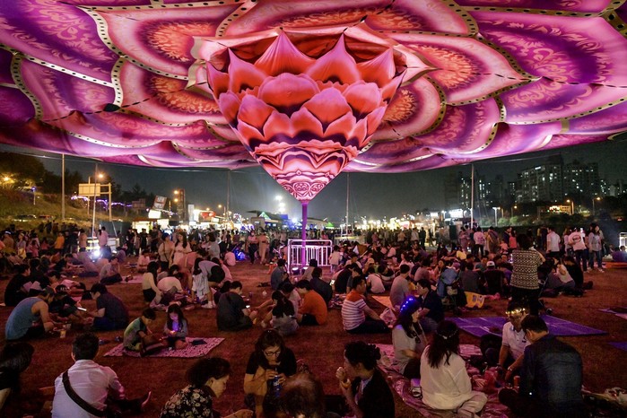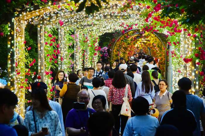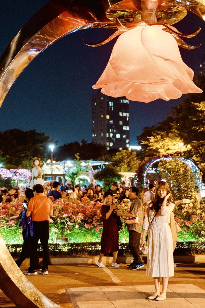 ☞ 25일(토) 저녁 많은 방문객들이 서울장미축제 5.15km의 장미터널을 찾아 야간조명과 함께 아름답게 핀 장미를 즐기며 걷고 있다.