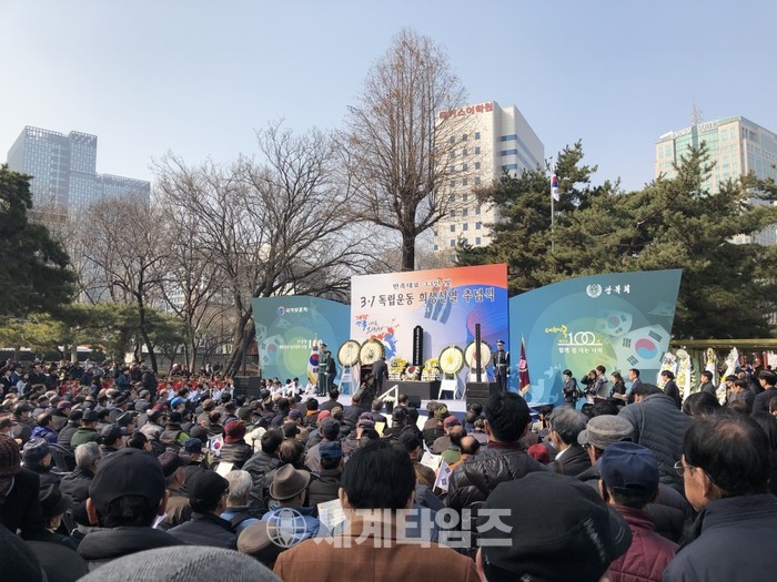 | ▲ 파고다 공원 삼일절 100주년 기념식 행사에서... (사진 = 박준기) |