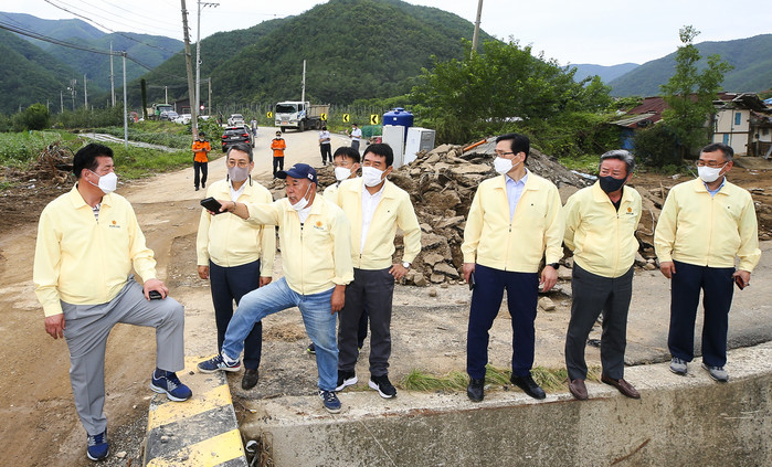 또한, 국도31호선 중 입암2교부터 약 40m 구간의 도로가 유실되는 등 폭우 피해를 입은 포항시 죽장면을 방문해 피해상황과 끊긴 연결도로 복구현장을 점검하고 근본적인 집중호우 대책수립을 주문했다.