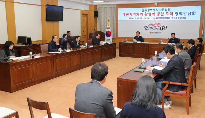 [대전 세계타임즈=이채봉 기자] 대전시의회 행정자치위원회는 조원휘 의원(국민의힘, 유성구 3) 주재로 22일 10시 30분 시의회 소통실에서 ‘민주평화통일자문회의 대전지역회의 활성화 방안 모색 정책간담회’를 개최했다.