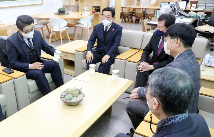 [충북=세계타임즈 이현진 기자] 충북도의회 박문희 의장은 4일 충북교육청을 방문해 학생들의 진로와 교육을 위해 노력하는 직원들의 노고를 격려하고 교육감과 새해인사를 나누었다.