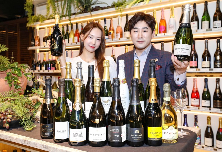 대표 상품은 '피에르 지모네 블랑 드 블랑 가스트로노메'(750ml, 15만원), '아르노 모로 그랑크뤼 에린 블랑드블랑 엑스트라 브뤼'(750ml, 18만원), '아 베르제르 오리진 브뤼'(750ml, 8만원) 등이 있다