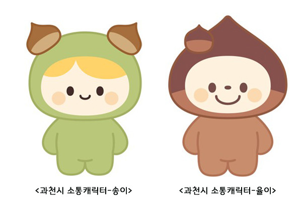과천시는 시정 소식을 보다 친근하고 쉽게 전달하기 위해 시 마스코트인 ‘토리‧아리’와는 별개로 소통 전담 캐릭터를 기획했으며, 과천시 시목인 밤나무의 ‘밤’을 모티브로 한 ‘송이·율이’를 새롭게 선보였다.