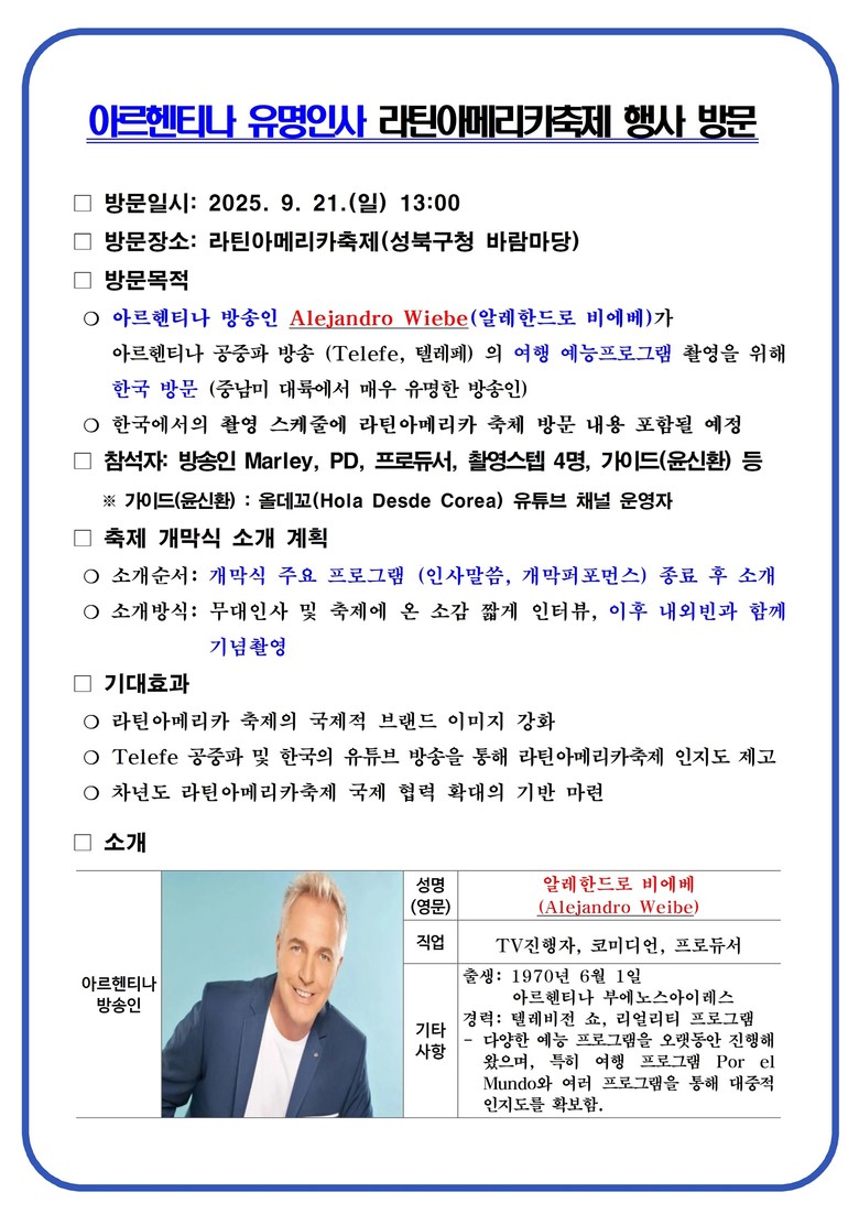 - 아르헨티나 유명 방송인 Alejandro Wiebe(알레한드로 비에베)도 축제 방문