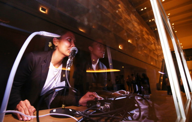 [세계타임즈 = 백진욱 기자] 9월 18일 오전 그랜드 하얏트 인천에서 HWPL 9·18 평화 만국회의 제9주년 기념식이 개최된 가운데, '2023 평화 지도자 콘퍼런스' HWPL 통번역부 봉사자들이 통역을 하고 있다.