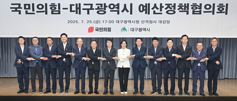 ▸ TK신공항·AI로봇 등 국정과제 반영 및 국비 확보 방안 논의 [세계타임즈=대구 한윤석 기자] 김정기 대구광역시장 권한대행 행정부시장은 7월 25일(금) 오후, 대구시청 산격청사 대강당에서 이인선 국민의힘 대구광역시당 위원장을 비롯한 지역 국회의원들과 함께 ‘대구광역시 국정과제화 추진사업과 2026년도 국비확보 사업’을 논의하는 예산정책협의회를 개최했다.