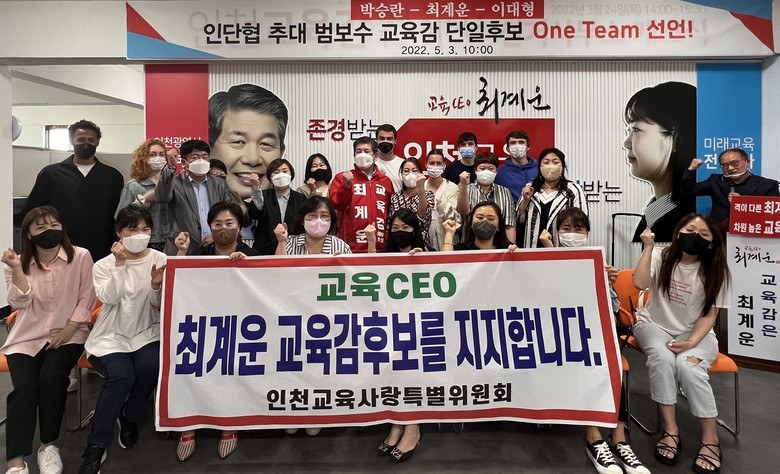 16일 최계운 교육감 후보 선거사무소에 따르면 이날 오후 ‘인천교육사랑 특별위원회’ 대표회원 20여 명이 최계운 후보와 간담회를 가진 후 지지선언을 했다.