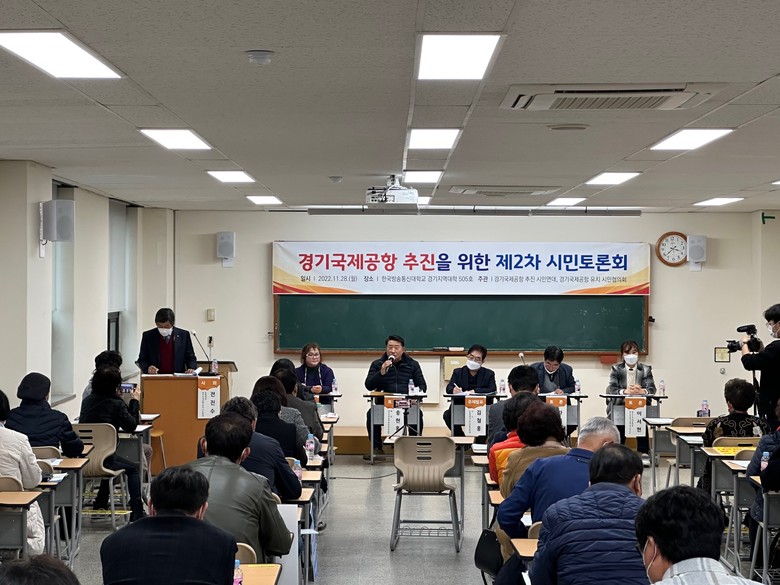 [세계타임즈 = 백진욱 기자] 지난 28일 한국방송통신대학교 경기지역대학에서 ‘경기국제공항’ 추진을 위한 제2차 시민토론회가 개최되었다.