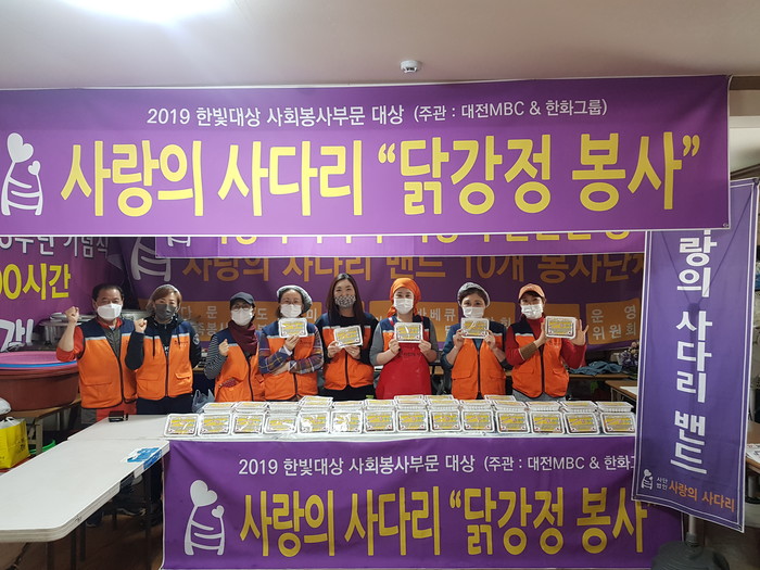 대전시지체장애인협회 동구지회 김연숙 회장은 “오늘 사랑의 사다리 밴드 봉사단체에서 맛있는 닭강정을 지원해 주어서 큰 힘과 위안이 된다.”면서 감사함을 전했다.