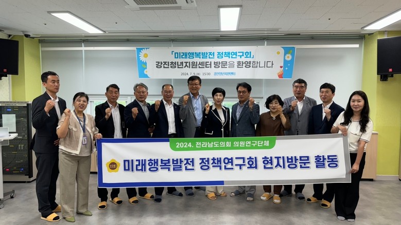 [전남 세계타임즈=우덕현 기자] 전라남도의회 의원 연구단체인 ‘미래행복발전 정책연구회(대표의원 송형곤)는 7월 9일 강진군청년지원센터를 방문하여 청년들과 소통의 시간을 가졌다.