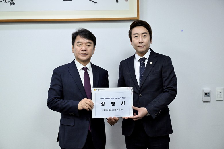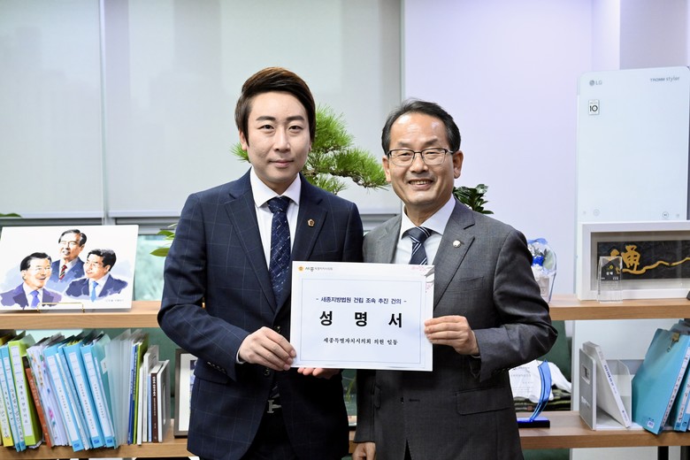 한편, 세종시의회는 지난 18일 여야 20명 의원 전원이 동참한 “세종지방법원 조속 추진 성명서”를 발표하며 기자회견을 개최하는 등 꾸준히 세종지방법원 설치를 촉구하는 활동을 이어온 바 있다.