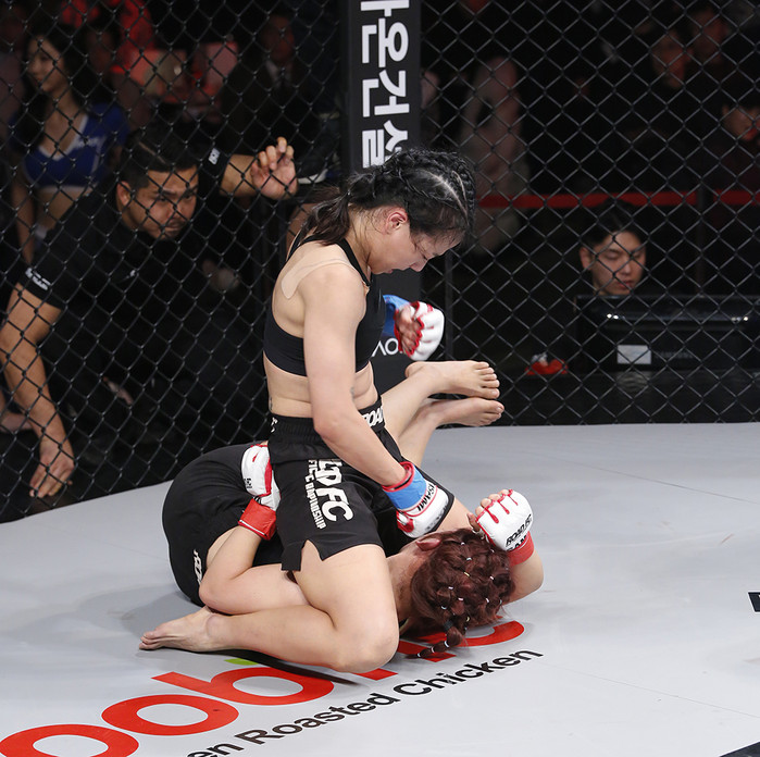 [세계타임즈 김인수기자] ‘꽃미녀 파이터’ 이수연(24, 로드짐 강남MMA)이 자신보다 경험이 많은 ‘선배’ 이예지(19, 팀제이)를 제압했다. 반드시 승리하겠다는 독한 마인드와 前챔피언 이윤준의 지도력이 합쳐진 결실이다.