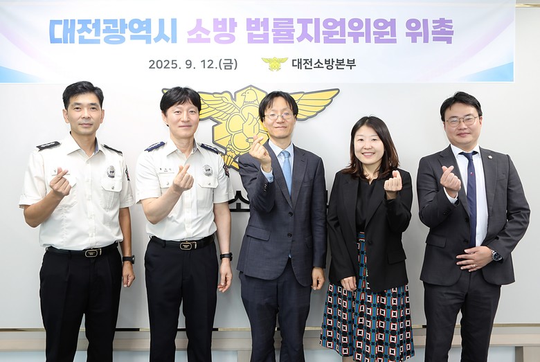 [대전 세계타임즈=이채봉 기자] 대전소방본부(본부장 김문용)는 9월 12일 시청 19층 본부장실에서 ‘대전시 소방 법률지원위원’ 위촉식을 열고 법률지원 체계 구축에 본격 착수했다고 밝혔다. 이번 제도는 소방행정과 현장 활동 과정에서 발생할 수 있는 법적 쟁점에 신속히 대응하기 위해 올해 처음 도입됐다.