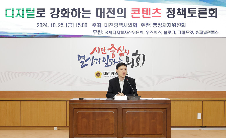 [대전 세계타임즈=이채봉 기자] 대전시의회가 주최하고 행정자치위원회가 주관하는 ‘디지털로 강화하는 대전의 콘텐츠 정책토론회’가 25일 15시 의회 3층 소통실에서 개최됐다.