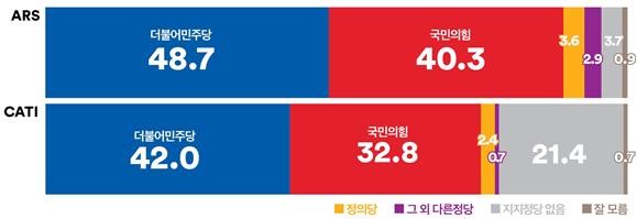 전화 면접조사, 수도권과 30대~50대 민심 더불어민주당으로