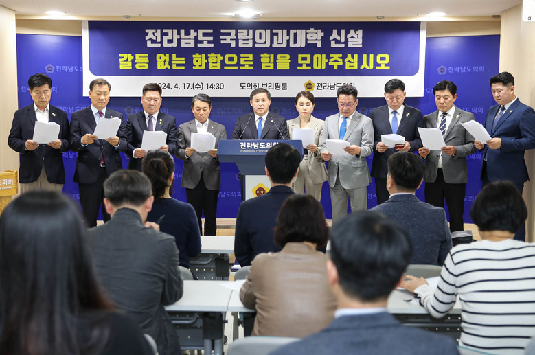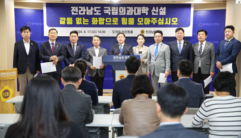 도의회는 “온 도민이 간절히 염원했던 전남 의대 신설이 마침내 확정되었지만, 목포대와 순천대 간 과열된 유치 경쟁을 넘어 전남 동서지역 갈등으로까지 확대되는 현실에 안타까움과 우려를 표한다”고 밝혔다.