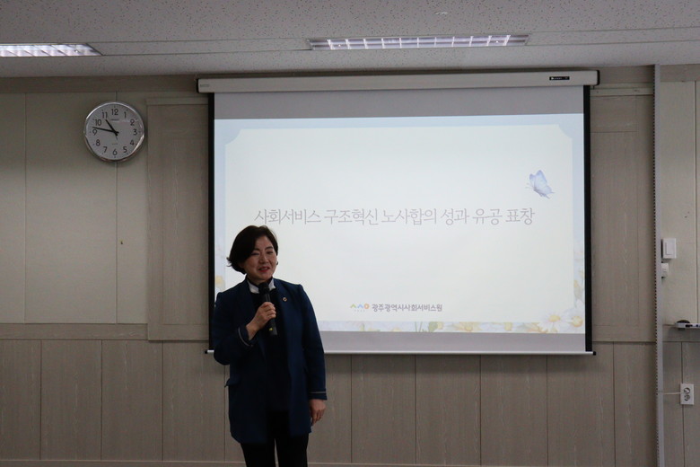 이번 감사패 수여는 광주사회서비스원의 안정적인 조직 운영과 질 높은 복지서비스 제공을 위한 구)광주복지연구원과의 기관통합 및 원활한 노·사간 합의가 진행되도록 중재한 공로를 인정받아 이뤄졌다.