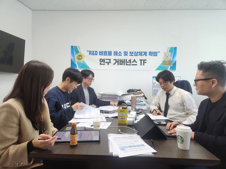 [경기도 세계타임즈=송민수 기자] 경기도의회 박상현 의원(더불어민주당, 부천8)은 27일 경기도의회 610호 의원실에서 도청, 경제과학진흥원 관계자들과 '연구 거버넌스 TF 2차 회의'를 개최하고, 경기도 R&D 사업의 인건비 책정 현실화 및 사업 범위 확대를 위한 정책 및 제도 개편을 논의했다.