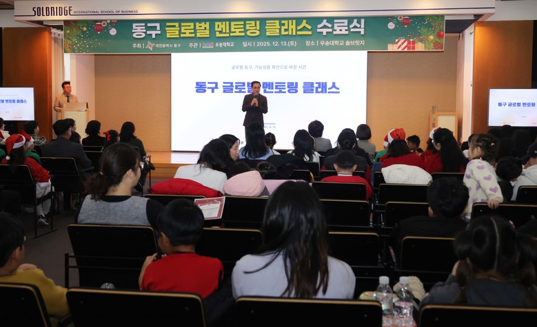 [동구 세계타임즈=이채봉 기자] 대전 동구(구청장 박희조)는 지난 13일 우송대학교 솔브릿지 경영대학 대강당에서 ‘동구 글로벌 멘토링 클래스’ 수료식을 개최했다고 밝혔다.