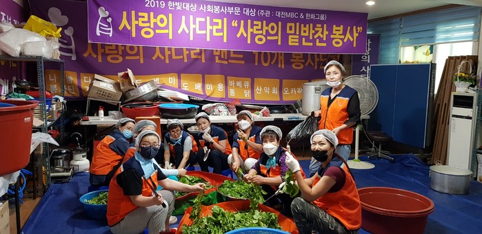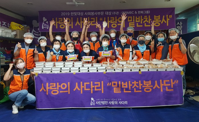 사랑의 사다리 밴드 밑반찬 봉사는 매주 금요일 오전9시에 동구-대덕구-서구-유성구-중구순으로 각 구별로 소외계층 30가정에 밑반찬 3종류를 만들어서 봉사를 하고 있다.