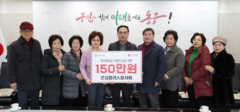 박희조 동구청장은 “17년 동안 한결같은 마음으로 지역을 위해 봉사하며 이웃사랑을 실천해 온 온심플러스봉사회에 깊이 감사드린다”며 “주민들의 따뜻한 마음이 담긴 성금이 꼭 필요한 곳에 전달될 수 있도록 소중히 사용하겠다”고 전했다.