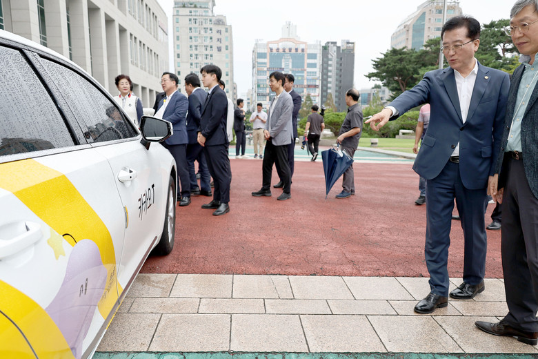 [대전 세계타임즈=이채봉 기자] 대전시의회 조원휘 의장은 6일 시청 남문 앞에서 진행된 ‘꿈돌이 택시 출범식’에 참석해 이장우 대전시장을 비롯해 김준언 개인택시운송조합 이사장, 김태훈 카카오T 대전본부 대표 등 관계자들과 인사를 나누고 대전 고유의 택시 브랜드 출범을 축하했다.