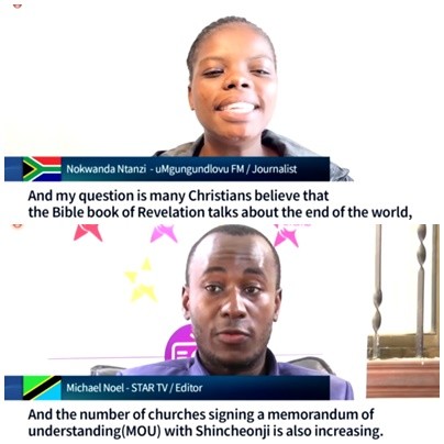 신천지예수교회는 지난 28일 오후 5시(한국시간) 아프리카 55개국 목회자 및 언론인을 상대로 ‘신천지예수교회 아프리카 기자회견: 천국 비밀 비유와 실상 증거’를 온라인(ZOOM)으로 개최했다.