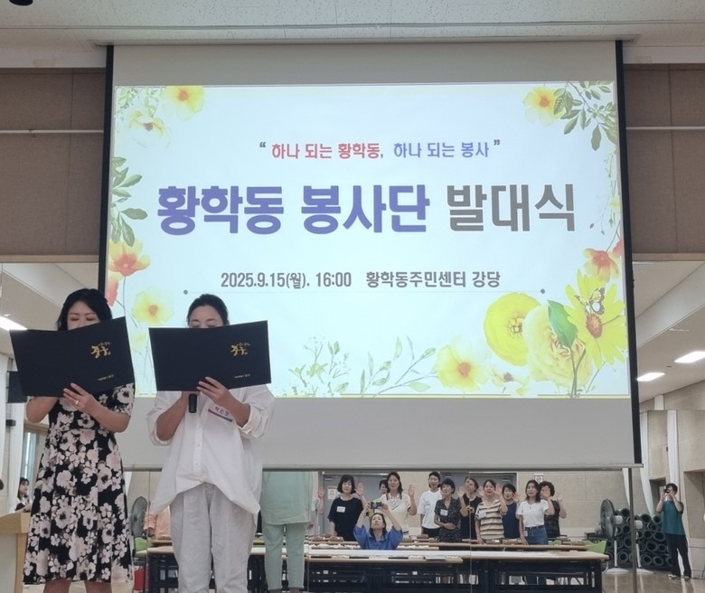 이날 발대식에는 봉사단원과 주민대표, 황학동장 등 30여 명이 함께해 봉사단의 출범을 축하했다. 행사에서는 봉사단 출범 선언과 단원 선서가 진행됐고, 앞으로의 운영 방향과 활동 계획도 공유했다.
