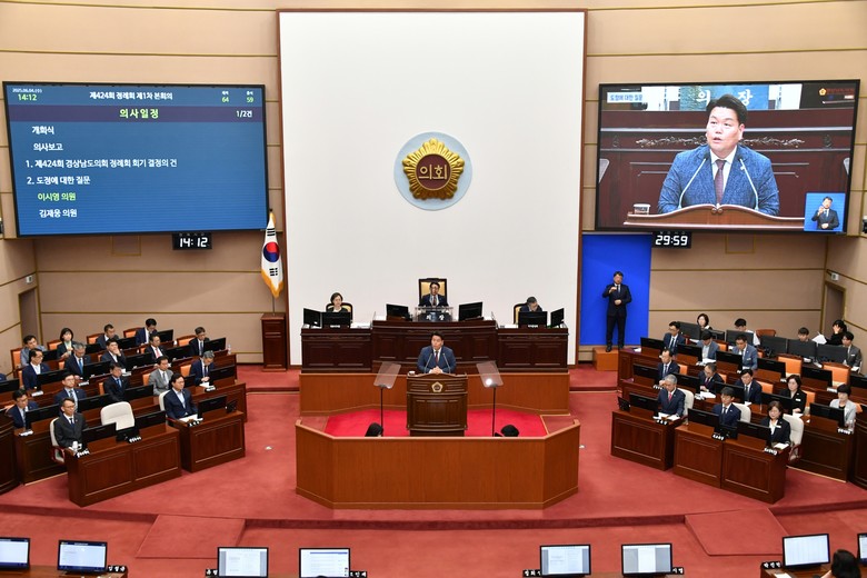 [경남 세계타임즈=최성룡 기자] 경상남도의회(의장 최학범)는 4일, 제424회 정례회 제1차 본회의를 열고, 17일간의 정례회 일정을 시작하였다. 이번 6월 정례회에서는 도정에 대한 질문, 2024회계연도 도청 및 교육청 결산 승인, 조례안 등 처리할 예정이다.