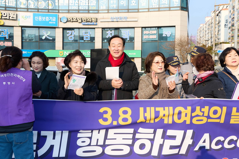 [통영시 세계타임즈=최성룡 기자] 여성의 지위향상을 위해 UN에서 지정한‘세계 여성의 날(3월 8일)’을 기념해 통영시가정폭력상담소(소장 문은자)는 지난 7일 오전 8시 시민들을 대상으로 거리 캠페인을 전개하고 홍보물품을 배부하는 활동을 펼쳤다.