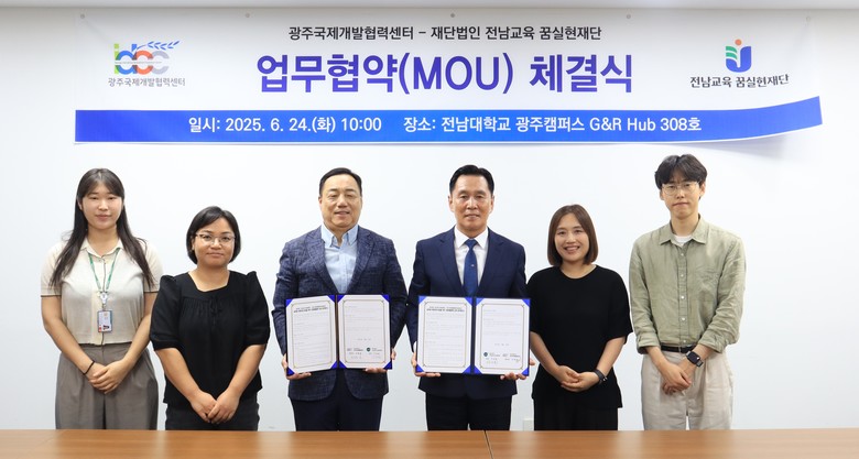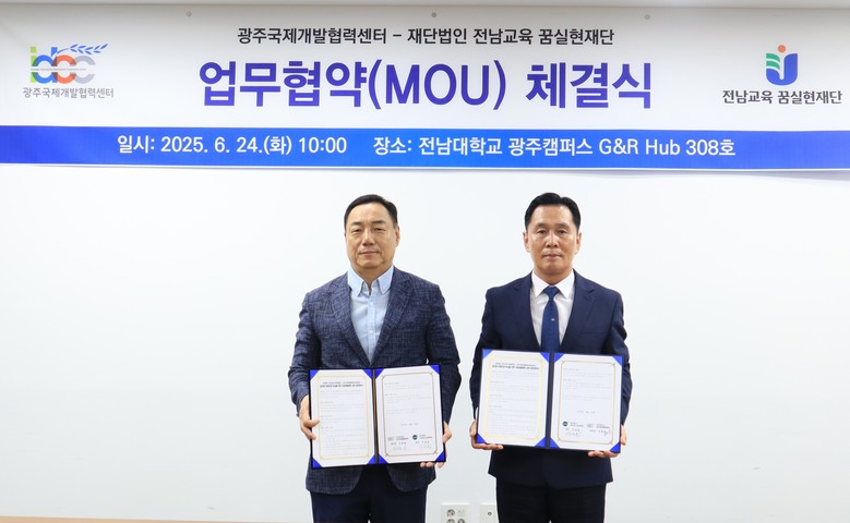 [전남 세계타임즈=우덕현 기자] (재)전남교육 꿈실현재단(이사장 김대중)은 24일 광주국제개발협력센터(센터장 강형철)와 ‘글로컬 미래인재 육성을 위한 국제개발협력 교육 업무협약’을 체결하고, 한국국제협력단(KOICA)과 연계한 청소년 해외봉사 체험 교육을 본격 추진한다고 밝혔다.