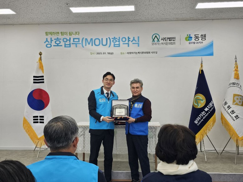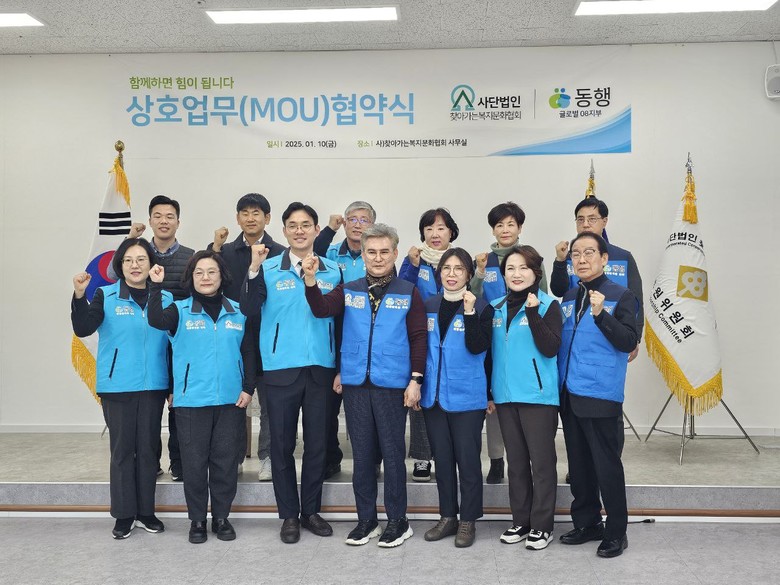 1월 10일 김포시 풍무로에 위치한 찾아가는 복지문화협회 회의실에서 ‘(사)찾아가는 복지문화협회’와 ‘동행 글로벌08지부’의 상호업무협약(MOU) 체결식이 열렸다.