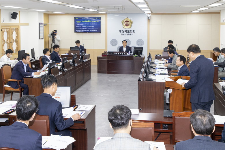 먼저, 건설도시국에서 제출한 예천 예누리 문화공원 조성에 따른 공유재산 내 영구시설물 축조 동의안과 이우청 의원(김천)이 발의한 경상북도 건축 조례 일부개정조례안, 최병준 의원(경주)이 발의한 경상북도 안전취약계층에 대한 안전환경 지원 조례안에 대해 면밀한 심사를 통해 원안 가결했다.