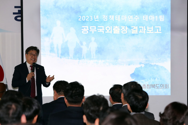 [충북 세계타임즈=이현진 기자] 충북도의회(의장 황영호)는 6일 도의회 회의실에서 2023년 정책테마연수 공무국외출장 결과보고회를 개최하고 연수 사례를 공유했다.
