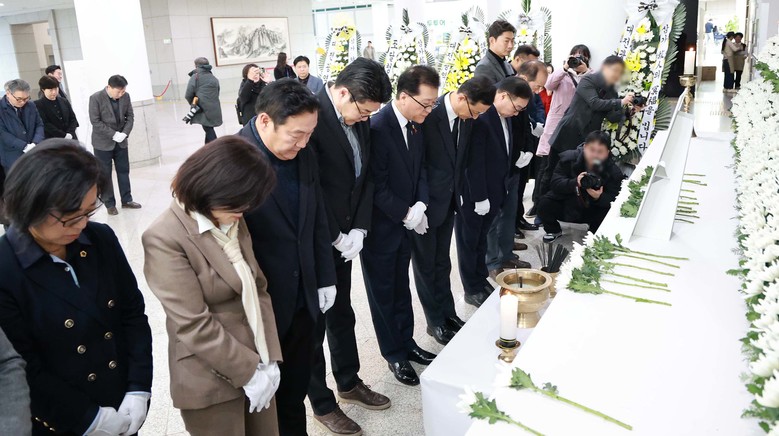 [대전 세계타임즈=이채봉 기자] 대전시의회 조원휘 의장은 30일 오후 대전시청 1층에 마련된 제주항공 여객기 사고 희생자 합동분향소를 찾아 희생자들의 명복을 빌며 깊은 애도의 마음을 표했다.