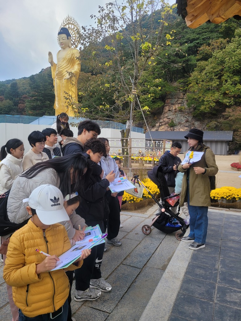 보은 코스 <보은 법주사 수학탐험대>에서는 법주사의 문화유산을 활용해 원주와 넓이 구하기, 선대칭 도형 탐구 등 활동을 통해 기하학적 아름다움을 체험했다.