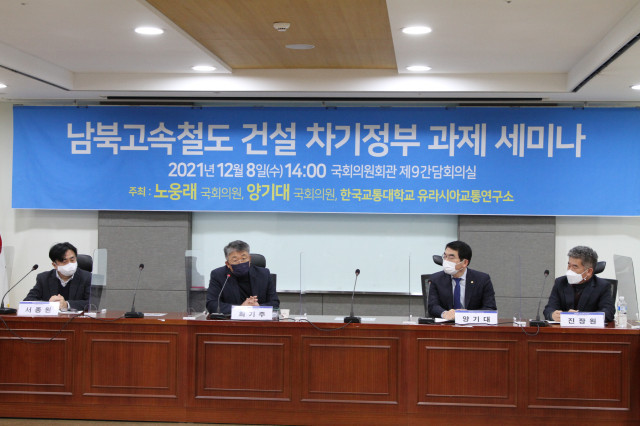 더불어민주당 노웅래(서울마포갑)‧양기대(경기광명을) 국회의원은 한국교통대학교 유라시아교통연구소와 공동으로 8일 국회 의원회관에서 ‘남북고속철도 건설 차기정부 과제 세미나’를 열었다.