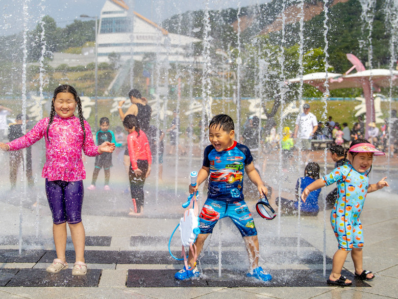 [대구 세계타임즈=한윤석 기자] 대구와 경북 대부분 지역에 폭염경보가 내려진 6일, 무더위도 삼남매의 웃음만큼은 막지 못했다. 칠곡보생태공원 바닥분수에는 시원한 물줄기와 함께 아이들의 환한 웃음이 퍼져나갔다.
