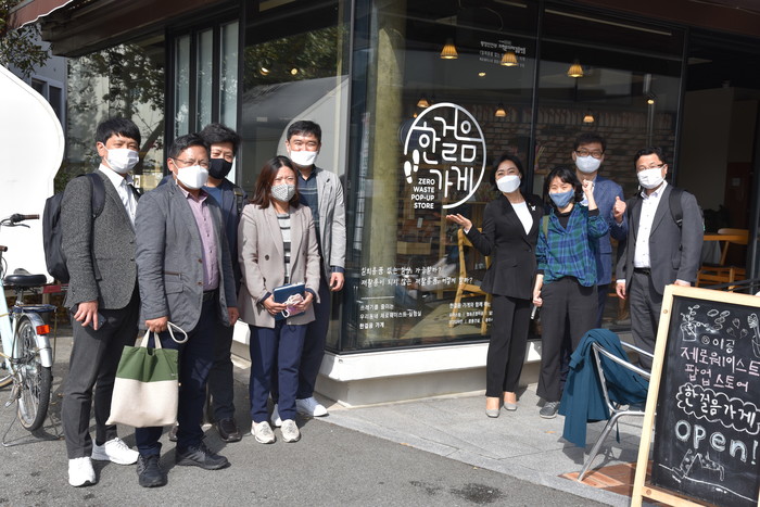 그동안 ‘자원순환 연구모임’에서는 ▲광주 클린하우스 추진 방향 ▲자원순환 사회 조성을 위한 NGO와 마을공동체 역할 모색 ▲환경부 ‘자원순환 정책 대전환’에 따른 정책 방향 논의 등의 내용으로 추진되었다. 최근에는 현장답사로 광주에 최초로 마련된 제로웨이스트 팝업스토어 ‘한걸음카페’를 방문하여 생활쓰레기 문제 해결을 위해 노력하는 민간 차원의 작은 실험의 장을 어떻게 확대해 갈 것인지 함께 모색하였다.
