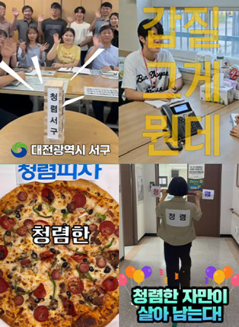 [서구 세계타임즈=이채봉 기자] 대전 서구(구청장 서철모)는 청렴 문화 확산을 위해 개최한 ‘2025년 부서별 청렴 콘텐츠 공모전’이 직원들의 뜨거운 호응 속에 마무리되었다고 23일 전했다.