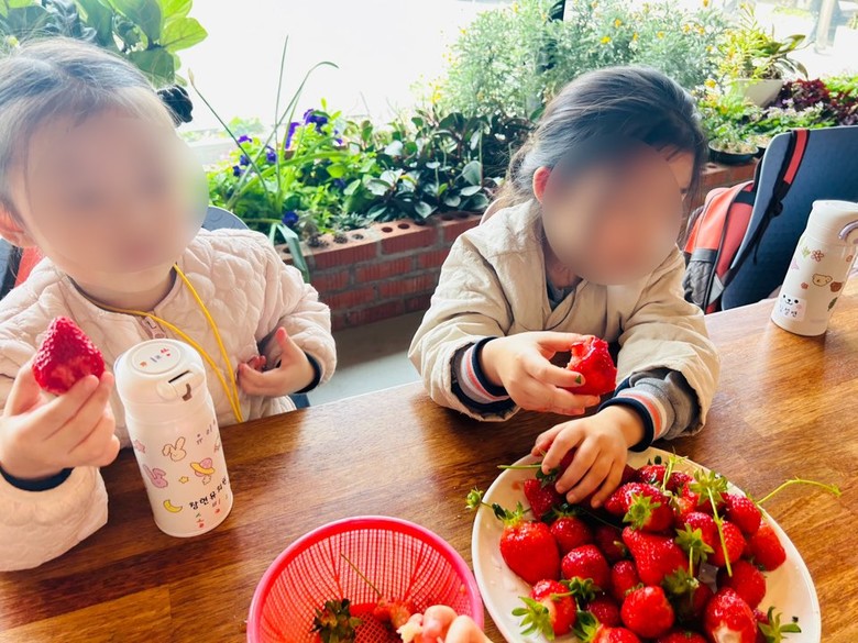 교사, 유아가 함께한‘딸기 체험’추억 나누기는 아이들에게 자연과 함께하는 기쁨을 주고, 딸기를 직접 보고 만지고 맛보는 활동을 통해 오감을 자극하는 즐거운 체험이었다.
