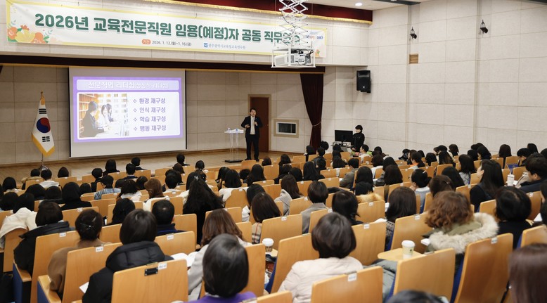 [광주 세계타임즈=손권일 기자] 광주시교육청(교육감 이정선)은 오는 12~16일 광주시교육청교육연수원에서 남부권 6개 시도교육청 교육전문직원 임용 예정자를 대상으로 ‘2026년 교육전문직원 공동 직무연수’를 실시한다.
