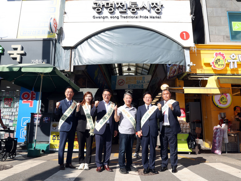 [광명시 세계타임즈=송민수 기자] 민족의 대명절 추석을 앞두고 광명시의회(의장 이지석)가 전통시장을 찾아 훈훈한 나눔을 실천하며 민생 현장을 살폈다.