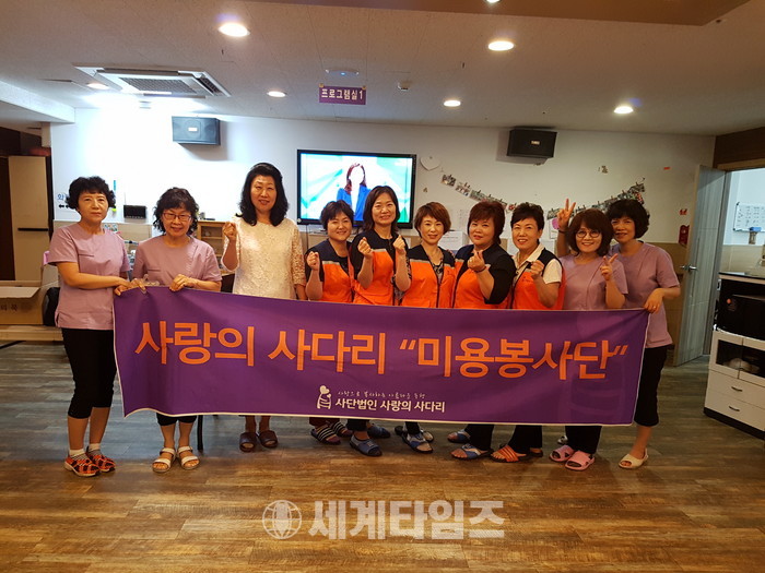 [대전=세계타임즈 이장성 기자] 5천명의 회원들이 활동하는 자발적인 SNS봉사 밴드인 사랑의 사다리 밴드(리더 이정제)는 6일 오전 10시 대전광역시 대덕구 비래동에 위치한 예사랑 실버케어 요양원(원장 김숙희)에서 치매 및 와상 어르신들 60분께 미용봉사로 훈훈한 이웃사랑을 전했다.