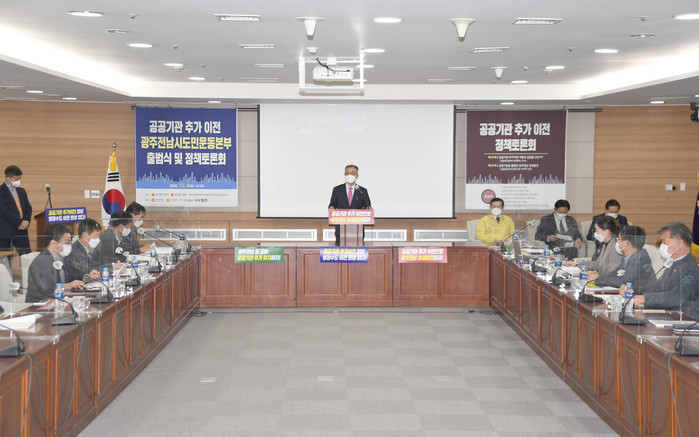 [광주=세계타임즈 손권일 기자] 광주광역시의회(의장 김용집)는 8일 오후 시의회 4층 대회의실에서 김광란 시의원이 토론자로 참석한 가운데 '공공기관 추가이전 방법과 공공기관 활용한 광주.전남 상생방안'을 주제로 정책토론회를 개최했다