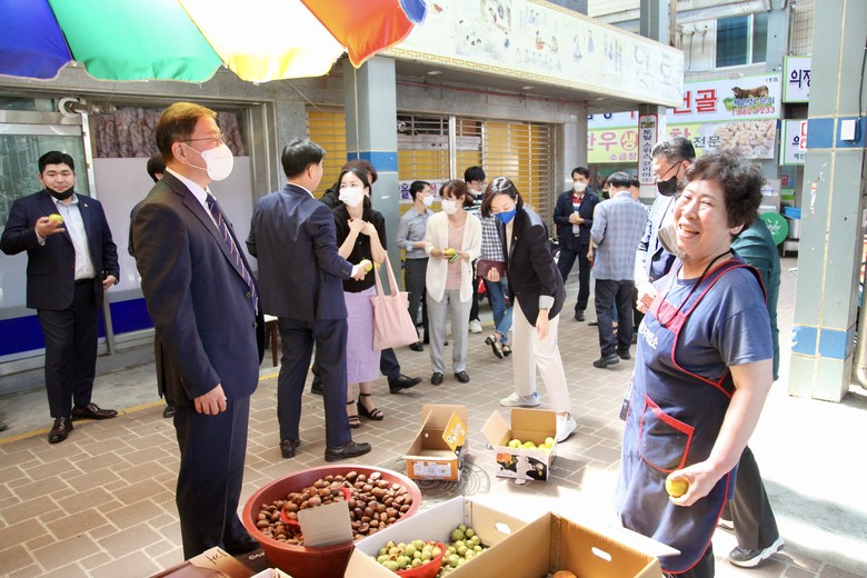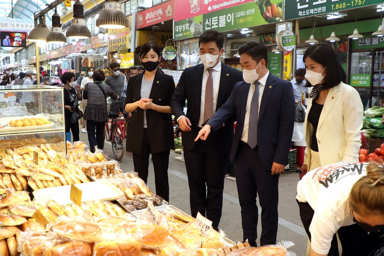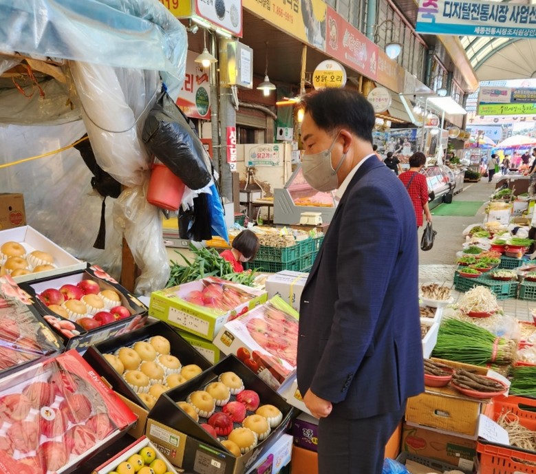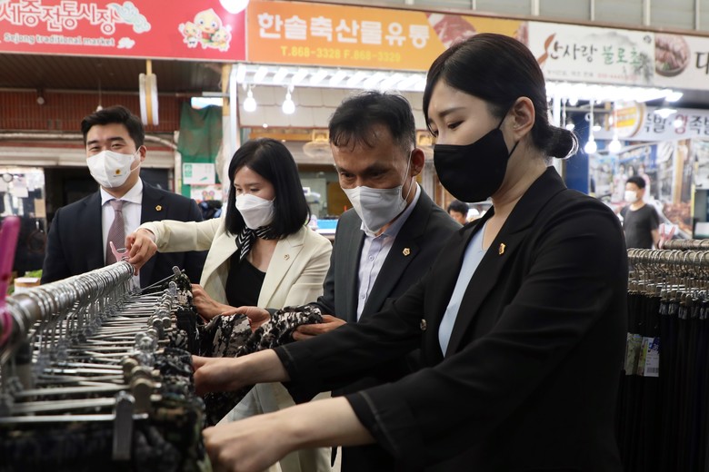특히 세종시의원 의원들은 시장 분위기와 애로사항 등에 관한 세종전통시장과 금남대평시장 상인들의 의견을 수렴하고 사회적 거리두기 해제 이후 첫 명절 대목을 맞은 상인들에게 격려의 말을 전했다.