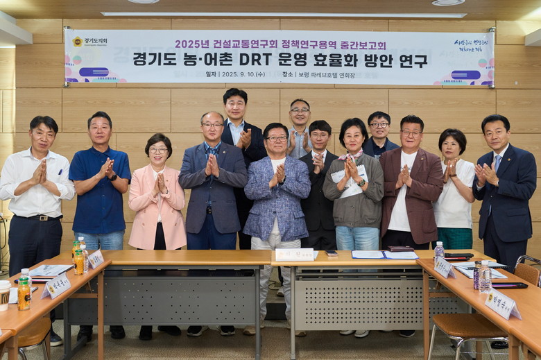 [경기도 세계타임즈=송민수 기자] 경기도의회 건설교통연구회(회장 허원 건설교통위원장)는 10일 경기도 내 농·어촌 DRT(똑버스)운영 효율화 방안 연구용역의 중간보고회를 개최했다.
