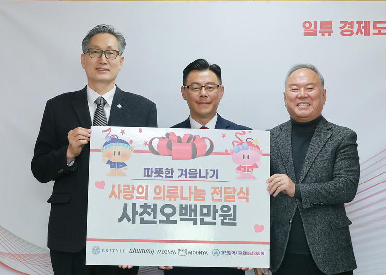 이번 기탁식에는 유득원 대전시행정부시장, ㈜지비스타일 김동희 유통혁신지원본부장, 김영태 (사)대전광역시자원봉사연합회장 등이 참석했다.